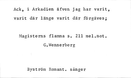 //// Ack, i Arkadien äfven jag har varit, varit där länge varit där förgäves; //// Magisterns flamma s. 211 mel.not. G.Wennerberg //// Byström Romant. sånger ////