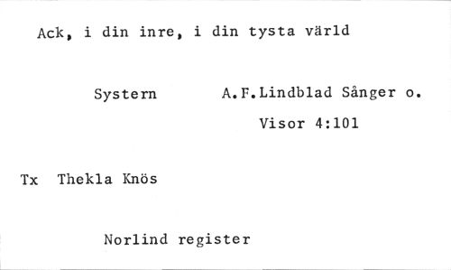 //// Ack, i din inre, i din tysta värld //// Systern A.F.Lindblad Sånger o. //// Visor 4:101 //// Tx Thekla Knös //// Norlind register ////