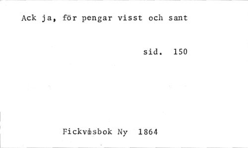 //// Ack ja, för pengar visst och sant //// sid. 150 //// Fickvisbok Ny 1864 ////