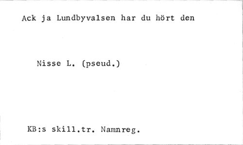 //// Ack ja Lundbyvalsen har du hört den //// Nisse L. (pseud.) //// KB:s skill.tr. Namnreg. ////