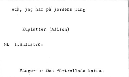 //// Ack, jag har på jordens ring //// Kupletter (Alison) Mk I.Hallström //// Sånger ur Den förtrollade katten ////