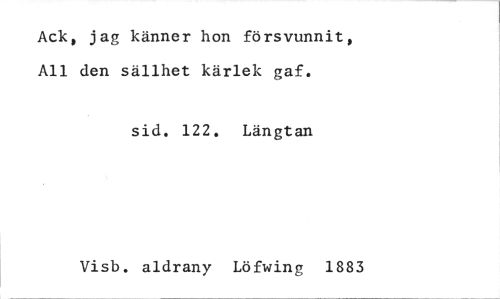 //// Ack, jag känner hon försvunnit, All den sällhet kärlek gaf. //// sid. 122. Längtan //// Visb. aldrany Löfwing 1883 ////