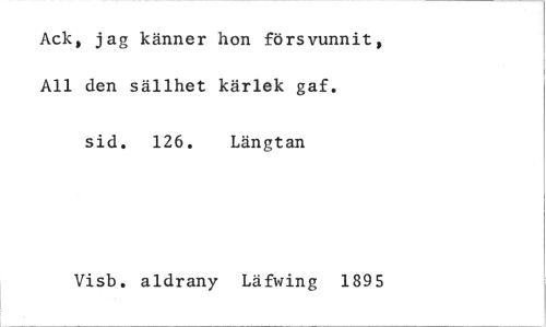 //// Ack, jag känner hon försvunnit, All den sällhet kärlek gaf. //// sid. 126. Längtan //// Visb. aldrany Läfwing 1895 ////