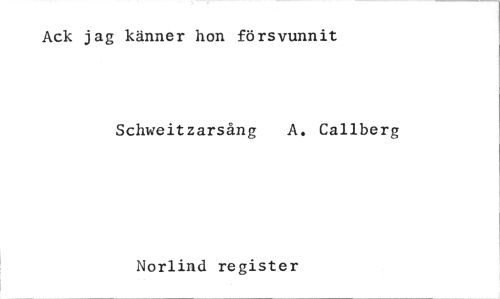 //// Ack jag känner hon försvunnit //// Schweitzarsång A. Callberg //// Horlind register ////