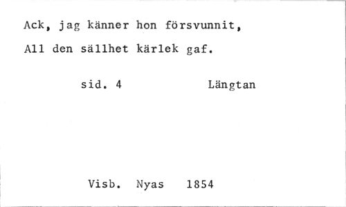 //// Ack, jag känner hon försvunnit, All den sällhet kärlek gaf. //// sid. 4 Längtan //// Visb. Nyas 1854 ////