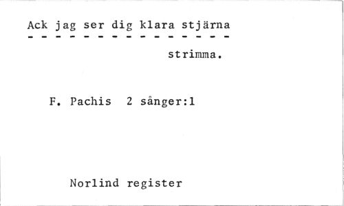 //// Ack jag ser dig klara stjärna //// strimma. //// F. Pachis 2 sånger:1 //// Norlind register ////