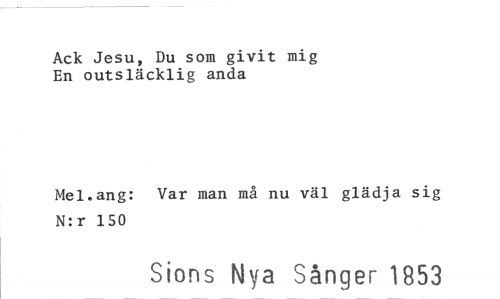 //// Ack Jesu, Du som givit mig En outsläcklig anda //// Mel.ang: Var man må nu väl glädja sig N:r 150 //// Sions Nya Sånger 1853 ////