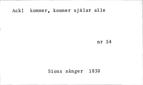 //// Ack! kommer, kommer själar alle //// nr 54 //// Sions sånger 1830 ////
