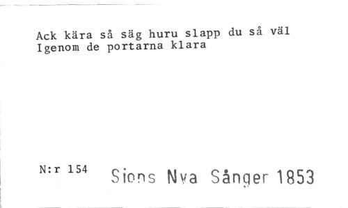 //// Ack kära så säg huru slapp du så väl Igenom de portarna klara //// N:r 154 • //// Stons Nya Sånger 1853 ////