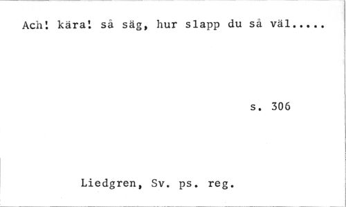 //// Ach! kära! sä säg, hur slapp du så väl //// s. 306 //// Liedgren, Sv. ps. reg. ////