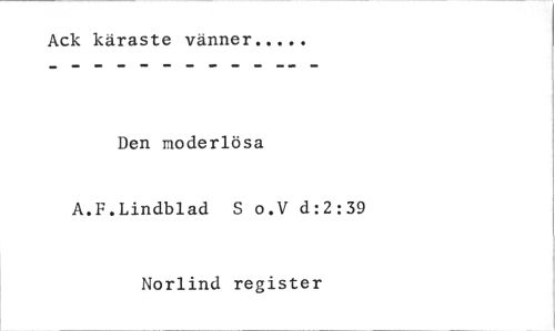 //// Ack käraste vänner //// Den moderlösa //// A.F.Lindblad S o.V d:2:39 //// Norlind register ////