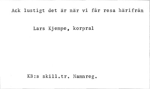 //// Ack lustigt det är när vi får resa härifrån //// Lars Kjempe, korpral //// KB:s skill.tr. Namnreg. ////