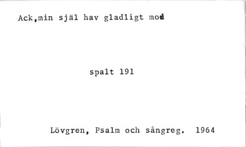 //// Ack,min själ hav gladligt mod //// spalt 191 //// Lövgren, Psalm och sångreg. 1964 ////
