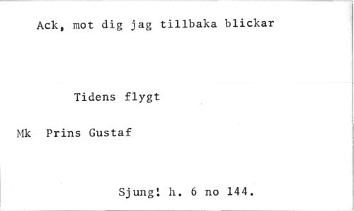 //// Ack, mot dig jag tillbaka blickar //// Tidens flygt //// Ifk Prins Gustaf //// Sjung! h. 6 no 144. ////