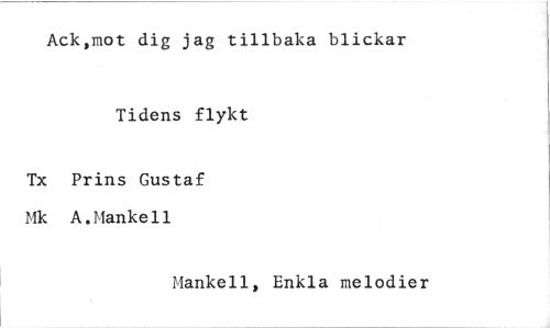 //// Ack,mot dig jag tillbaka blickar //// Tidens flykt //// Tx Prins Gustaf Mk A.Mankell //// Mankell, Enkla melodier ////