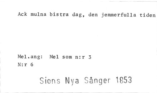 //// Ack mulna bistra dag, den jemmerfulla tiden //// Mel.ang: Mel som n:r 3 N:r 6 //// Sions Nya Sånger 1B53 ////