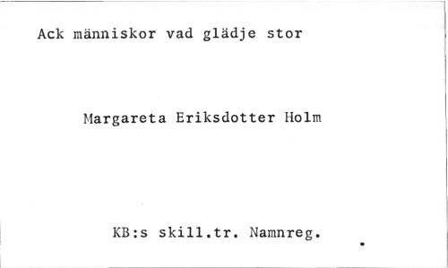 //// Ack människor vad glädje stor //// Margareta Eriksdotter Holm //// KB:s skill.tr. Namnreg. ////