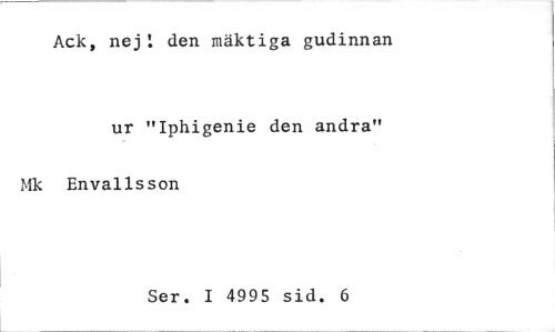 //// Ack, nej! den mäktiga gudinnan //// ur "Iphigenie den andra" fik Envallsson //// Ser. I 4995 sid. 6 ////