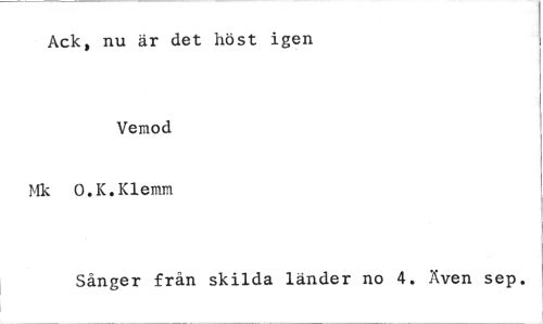 //// Ack, nu är det höst igen //// Vemod //// Mk O.K.Klemm //// Sånger från skilda länder no 4. Även sep. ////