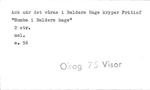 //// Ack när det våras i Balders Hage kryper Pritiof //// "Rumba i Balders hage" //// 2 stra //// mel. //// s. 56 //// 0,ro 75 Visor ////