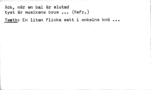 //// Ack, när en bal är slutad tyst är musikens brus ... (Refr.) //// Tectb: En liten flicka satt i onkelns knä ... ////