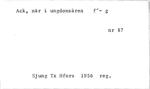 //// Ack, när i ungdomsåren f-- g //// nr 87 //// Sjung Tx Hfors 1956 reg. ////