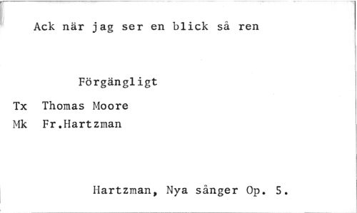 //// Ack när jag ser en blick så ren //// Förgängligt //// Tx Thomas Moore Mk Fr.Hartzman //// Hartzman, Nya sånger Op. 5. ////