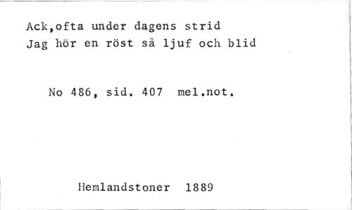 //// Ack,ofta under dagens strid //// Jag hör en röst så ljuf och blid //// No 486, sid. 407 mel.not. //// Hemlandstoner 1889 ////