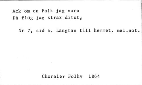 //// Ack om en Falk jag vore Då flög jag strax ditut; //// Nr 7, sid 5. Längtan till hemmet. mel.notH //// Choraler Folkv 1864 ////