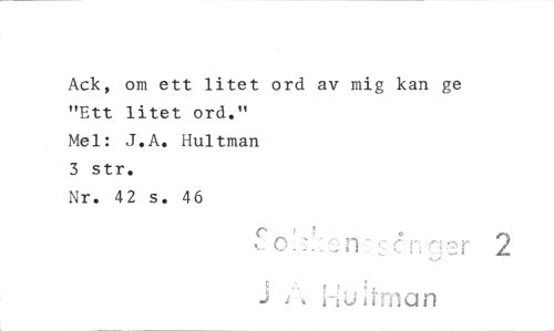 //// Ack, om ett litet ord av mig kan ge //// "Ett litet ord." //// Mel: J.A. Hultman //// 3 str. //// Nr. 42 s. 46 //// itman ////