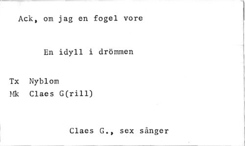 //// Ack, om jag en fogel vore //// En idyll i drömmen //// Tx Nyblom //// Mk Claes G(rill) //// Claes G., sex sånger ////