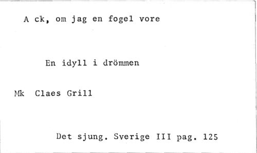 //// A ck, om jag en fogel vore //// En idyll i drömmen Mk Claes Grill //// Det sjung. Sverige III pag. 125 ////
