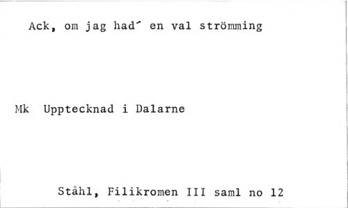 //// Ack, om jag had' en val strömming //// Mk Upptecknad i Dalarne //// Ståhl, Filikromen III saml no 12 ////