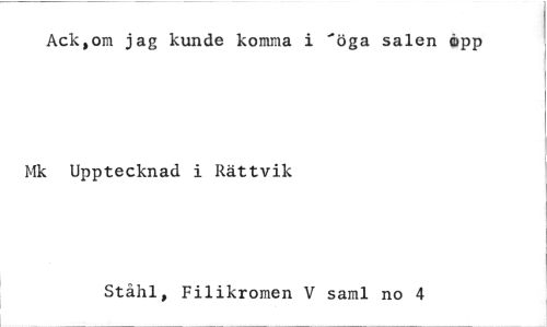 //// Ack,om jag kunde komma i "öga salen opp //// Mk Upptecknad i Rättvik //// Stähl, Filikromen V saml no 4 ////