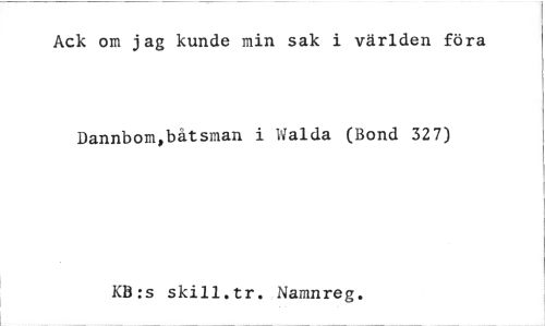 //// Ack om jag kunde min sak i världen föra //// Dannbom,båtsman i Walda (Bond 327) //// KB:s skill.tr. Namnreg. ////