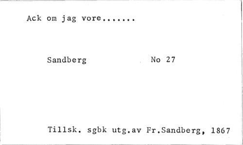 //// Ack om jag vore //// Sandberg No 27 //// Tillsk. sgbk utg.av Fr.Sandberg, 1867 ////