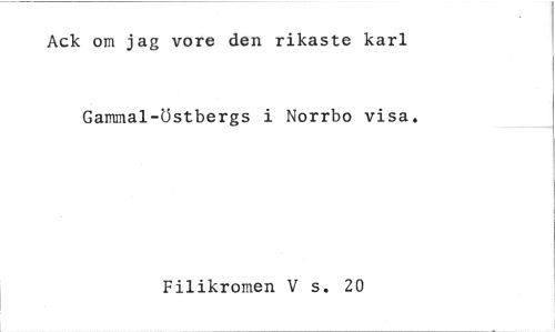 //// Ack om jag vore den rikaste karl //// Gammal-Östbergs i Norrbo visa. //// Filikromen V s. 20 ////