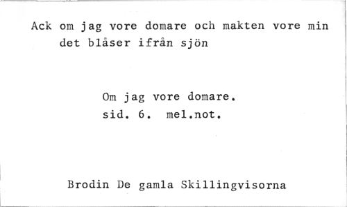 //// Ack om jag vore domare och makten vore min det blåser ifrån sjön //// Om jag vore domare. sid. 6. mel.not. //// Brodin De gamla Skillingvisorna ////