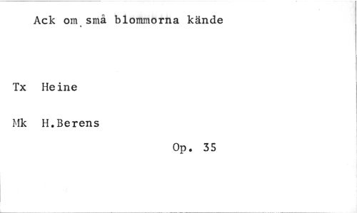 //// Ack omsmä blommorna kände //// Tx Heine //// Hk H.Berens //// Op. 35 ////