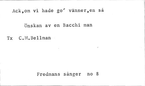 //// Ack,om vi hade go' vänner,en så //// Önskan av en Bacchi man Tx C.M.Bellman //// Fredmans sånger no 8 ////