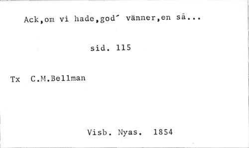 //// Ack,om vi hade,god- vänner,en sä... //// sid. 115 //// Tx C.M.Bellman //// Visb. Nyas. 1854 ////