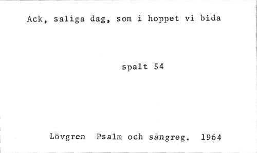 //// Ack, saliga dag, som i hoppet vi bida //// spalt 54 //// Lövgren Psalm och sangreg. 1964 ////