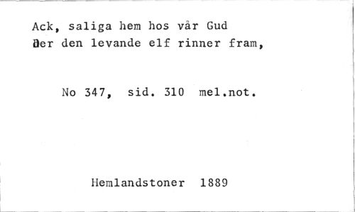 //// Ack, saliga hem hos vår Gud //// Ber den levande elf rinner fram, //// No 347, sid. 310 mel.not. //// Hemlandstoner 1889 ////