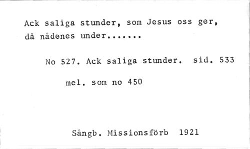 //// Ack saliga stunder, som Jesus oss ger, //// då nådenes under //// No 527. Ack saliga stunder. sid. 533 mel. som no 450 //// Sångb. Missionsförb 1921 ////