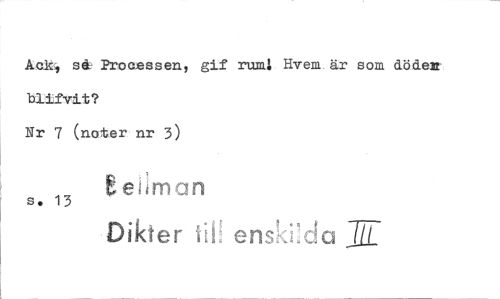 //// AcI4 set Processen, gif rum! Hvem är som &Mer': bIUVit? //// Nr 7 (noter nr 3) //// s. 13 elman //// Dikter i; e sKi.da ////