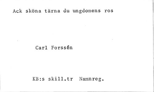//// Ack sköna tärna du ungdomens ros //// Carl Forss6n //// KB:s skill.tr Namnreg. ////