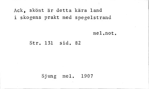 //// Ack, skönt är detta kära land i skogens prakt med spegelstrand //// mel.not. //// Str. 131 sid. 82 //// Sjung mel. 1907 ////