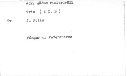 //// Ack, sådan vinterqväll Trio ( 2 T. B ) //// Tx J. Jolin //// Sånger ur Veteranerne ////