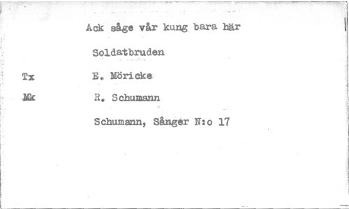 //// Ack låge vår kung bara här //// Soldatbruden //// Ta E. =ricka //// Nk R. Schumann //// Schumann, Sånger N:o 17 ////