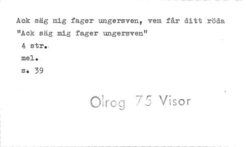 //// Ack säg mig fager ungersven, vem får ditt röda //// "Ack säg mig fager ungersven" //// 4 str. //// mel. //// a. 39 //// Ofroq Visor ////
